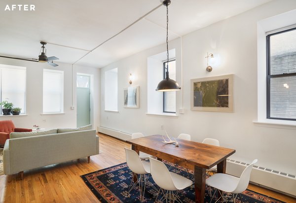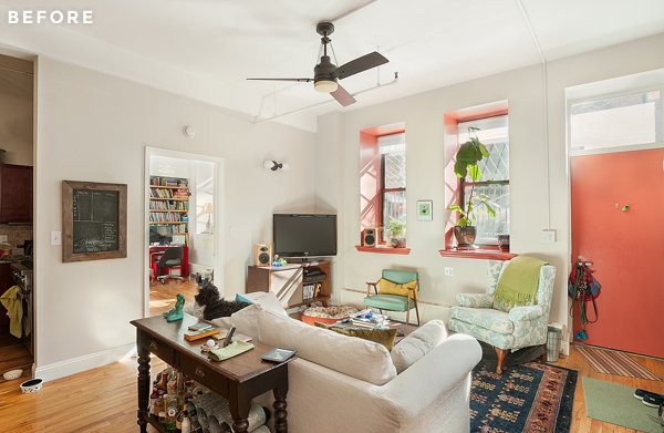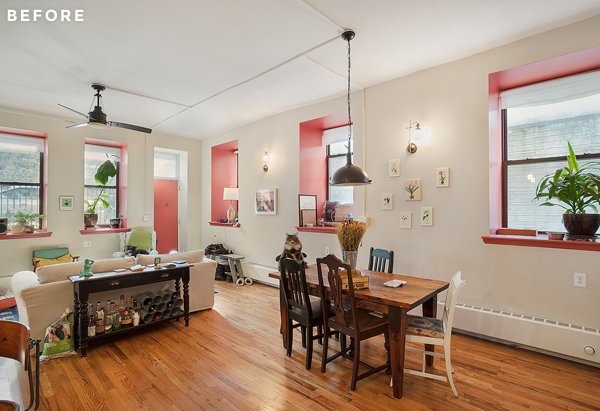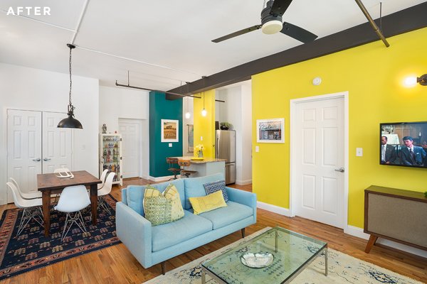 Erica és Donna 4 évvel ezelőtt költöztek ebbe a kétszobás napfényes lakásba. Adott volt a nagy belmagasság, a hatalmas ablakok, és a modern városi környezet. Kezdetben mindketten az ipari és a rusztikus dekorációkat részesítették előnyben, de aztán amikor kissé túlköltekeztek, és még mindig nem olyan volt, amilyennek szerették volna, úgy döntöttek, szükségük van tervezői segítségre.
