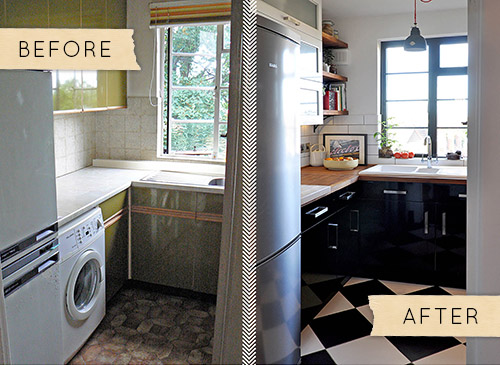 Erica és Donna felújították a konyhaszekrényt is. Az eredeti cseresznyefa bútort halványkékre festették, ami tökéletes kiegészítője a lakás színeinek. A konyha mögött még ey kis tolajtós szekrényt is kialakítottak, hogy el tudják rejteni szem elől a nem használt dolgokat.