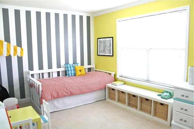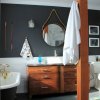 Nézd meg ezt a kedves kis fürdőszobát, amit Janette alakított ki a gyerekeinek. Nem nagy dolgot csinált, csupán elpakolta szem elől a piperedolgokat, leszerelte a polcokat a fürdőből és a wc-ből is. A fal ugyanolyan kék maradt, mint volt, csupán a bútort festette át sötétbarnára.