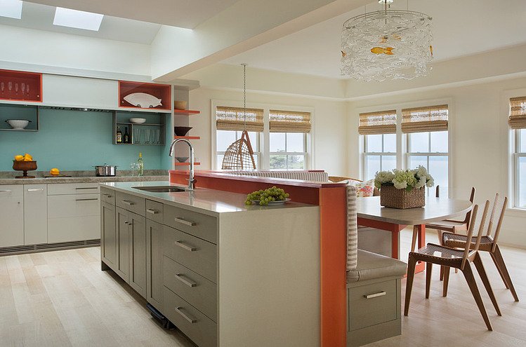 A tengerpart látványa önmagában is fantasztikus. Ha az ember lányának megadatik, hogy egy ilyen csodás helyen építsen – vagy béreljen – házat, akkor kutya kötelessége hatalmas ablakokat tervezni a kéglire. Ezen kívül a színek… nos igen, a színek borzasztó nagy hatással vannak ránk, ez nem is kérdéses. De ha a tenger és a homok színeit komponáljuk a lakásba, akkor biztosak lehetünk a nyugodt légkörben.